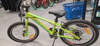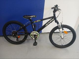 Bicicleta junior Rockrider ST100 de 20 pulgadas. Ideal para iniciarse en el ciclismo. - Cuadro de acero. - Frenos V-brake. - Ruedas de 20 pulgadas. Necesita engrasar la cadena y revisar el freno delantero porque chirría un poco.
