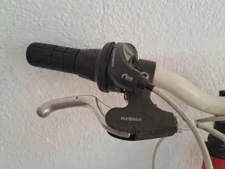 Bicicleta infantil Monty Kys Junior en color blanco. Ideal para iniciarse en el ciclismo. - Cuadro de aluminio. - Ruedas de 20 pulgadas. - Frenos V-Brake. - Cambio Shimano de 6 velocidades.