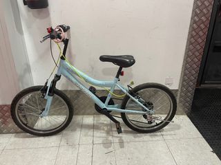 bicicleta ideal para niños/as de entre 6 y 10 años que ya han aprendido a montar en bici, es de color azul claro. Se vende con LUZ trasera, cuadro de acero, trasmision 1x6, ruedas de 20 pulgadas. Para niños/as que midan entre 1,20 y 1,35cm. es ideal para dar paseos con la familia tanto por ciudad como por el campo, subir y bajar cuestas. la bici esta perfecta, solo hay que lavarla un poco :)