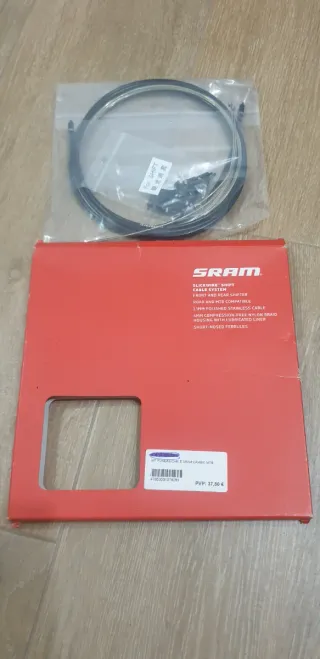 Kit de cables y fundas para cambio de bicicleta de montaña (MTB) de la marca SRAM. Incluye todo lo necesario para la instalación. - Cables de acero inoxidable para cambio. - Fundas protectoras. - Terminales y topes. Tal como se ver en la foto se puede ver sin compromiso ME PUEDO DESPLAZAR DE PENDE DE LA ZONA XT FOCUS MÉRIDA MENDY KTM TREK XTR ORBEA BH