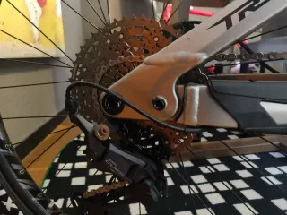 Vendo Lapierre Shaper 2.0 ideal para desplazamientos urbanos o cicloturismo, porque tiene anclajes en la horquilla y el basculante para montar alforjas. Comprada el 15/04/2024, tiene marcas de uso en la horquilla y el portabultos de dejarla candada en la calle, de ahí el precio. El modelo de serie trae 3 platos (ver mando en las fotos 7 y 8) pero en tienda la montaron siguiendo mis indicaciones con un único plato de 34 dientes y bielas SRAM. Es una talla L equivalente a una M en otras marcas; yo mido 1,77m y me va perfecta. La vendo tal cual está en las fotos sin el candado.