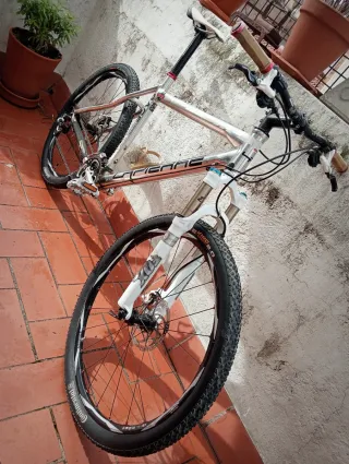 Bicicleta de montaña Scott Scale 50 bastante buena BTT Especificaciones de la bici: Cuadro ligero de aluminio resistente y ligero peso aprox 11kg-12kg Talla de la bici 26x2.1 Alturas 1.60 normalmente hasta 1.80m La Bici, está bastante bien alguno que otro signo de uso jamás ha tocado el suelo en caída, solo raspadas Frenos disco Shimano SLX Extra:Disco delantero 203mm Trasero:160mm Suspensiones RockShox bloqueable Cualquier duda↗️ Cadena sucia necesita limpieza Hace algún ruido de vez en cuando no afecta O Cambio por alguna doble suspensión Specialized,Ghost,Trek,Massi,lapierre,Yt O DH No negiacble No leer:MTB,Specialized, moun