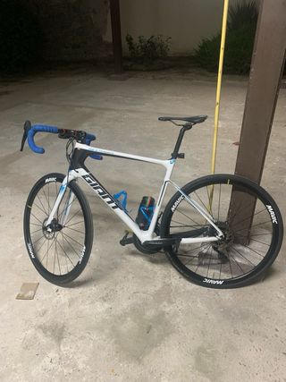 Precio original: 2000 EUR Talla 53 Casi nueva, muy poco uso, unas 20 salidas de 30Km. Pruébala. Fibra de carbono. Cambios Shimano Ultegra 10v (trasero) y Desviador 105 (delantero). Mandos Shimano 105. Sistema de cableado interno con puertos para cambio de cables de forma sencilla. Llantas Mavic Juego de ruedas casi nuevas, con protección anti-pinchazos, 700x25c Pedales mixtos Shimano PD-EH500. Regalo otros Look Keo. Más fotos: photos.app.goo.gl/se7nLGtVVKs1nrYy7 ENVÍO: No la envío porque empaquetar una bicicleta es complicado. Puedo llevarla a una dirección en Madrid o puedes recogerla por la zona de Barajas.