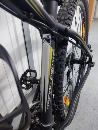 Bicicleta montaña en perfecto estado y muy poco uso. Aún con neumáticos originales al 50%. Cuadro de aluminio. 3platos x 10 piñones. Llantas y neumáticos 29 pulgadas. Cambios shimano decore. Frenos avid. Talla L 19’’.