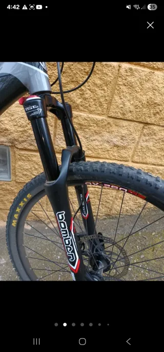 Bicicleta de montaña de carbono marca mondraker. Faltaría cambiar la cadena , el neumático trasero. - Cuadro de carbono ligero y resistente. - Llantas Maxxis. - Frenos de disco.