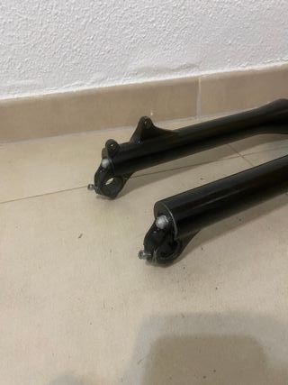 Vendo horquilla Marzocchi Bomber Drop Off del 2005, ideal para freeride, enduro o DH en bicicletas de 26". Recorrido: 140mm Para ruedas de: 26" Eje pasante: 20mm (incluido en el precio) Diámetro de barras: 32mm Largo del tubo de dirección: 17 cm Nota: La horquilla necesita mantenimiento, cambio de retenes de las barras y colocarle aceite. Pierde aceite en una de las barras. Tambien incluyo un vaso especial para hacerle mantenimiento. (Es un vaso lijado) La vendo porque actualice mi bicicleta. Se puede ver sin compromiso.