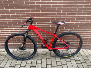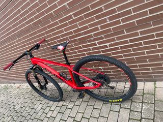 Cuadro Scott scale de carbono sin fisura algunas marcas de uso el único problema que debajo de la barra horizontal por donde van los cables le falta para la sujeción de los cables un remache se quitó al desmontar y el otro remache tiene el tornillo dentro del remache última foto por eso el precio pero por todo lo demás está perfecto no tiene fisuras se entrega con desviardor delantero xt y dirección ritchey talla M ruedas de 26" CONOR ORBEA BPRO TREK CUBE SCOTT FUJI MONDRAKER CANNONDALE CANYON KTM FOCUS LAPIERRE SPECIALIZED CARBONO MONTAÑA FOX XTR XT SLX BH ONOFF BONTRAGER SRAM FSA