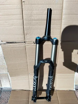 Horquilla de suspensión Fox float 36 fit rc2 de 180mm de recorrido sin desgaste ni arañazos ni picadas en los tubos prácticamente nueva salvo el desgaste del cable de freno en pletina superior ni abolladuras en las botellas ni nada tubo dirección cónico 19 centímetros - Marca: Fox - Modelo: Float 36 fit rc2 - Color: Negro y plateado - Incluye tapones azules de ajuste. Conor Orbea lapierre bpro Trek KTM canyon Fuji Scott Ghost mondraker sram xt xtr Avid descenso montaña BH