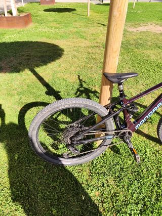 Bicicleta Mondraker de 24 pulgadas, en perfecto estado. - Cuadro de aluminio ligero. - Suspensión delantera. - Frenos de disco. - Cambio Shimano de 7 velocidades. - Neumáticos Kenda.