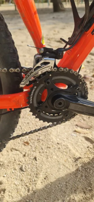 Bicicleta de montaña Mondraker Chrono RR en color naranja. Cuadro de aluminio ligero, pequeñas marcas de uso. - Ruedas de 29 pulgadas. - Horquilla de suspensión FOX RHYTHM 32. - Transmisión Shimano Deore 12v. - Frenos Shimano. - Cassette Sram 11-50. - Cubiertas Vittoria. - Talla L. ***Se entrega sin pedales. Entregas solo en Zona Las Tablas, Madrid. NO SE HACEN ENVÍOS.