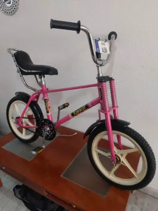 Bicicleta infantil restaurada de la marca Torrot, con un llamativo color rosa. - Ruedas Autoplast de color blancas nuevas. - Sillín nuevo. - Petalles nuevos. - Cubiertas Sprin-Cross usadas. - Ruedines resistentes adaptados, no se aprecia en fotos. - Última foto era su estado de recogida, preguntar sin compromiso. Gac Crosseta, Monty, Florida, Freestyle California, x2, x3, x4, x5, Mag5, Motoretta 2, G.A.C. Motoretta, Old School, Orbea Furia, Akimoto, Rabasa, Metta 2000, Derbi Jet Cross, Haro,Derbi Panther Cross Match 2, Bmx antigua, GT, Torrot t.t, Torrot Mx, Dakota, Arizona, Golden Gate, Tiger, bici antigua, clásica, Bmx etc etc..