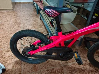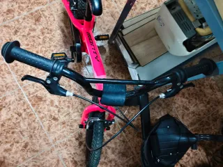 Bicicleta infantil de la marca Monty en color rosa. - Manillar negro con puños texturizados. - Frenos delanteros y traseros. - Pedales con reflectores.