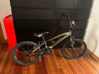 Bicicleta infantil de la marca Monty, ideal para niños. - Color amarillo y negro. - Ruedas de 20 pulgadas. - Sillín con funda protectora.