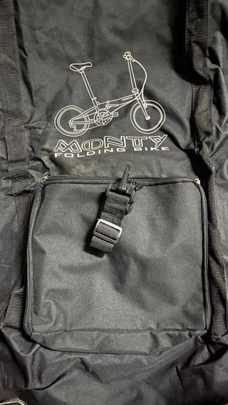 Bolsa para transpotar Bicicleta Plegable marca Monty. Nueva a Estenar. Tiene Bolsillo Central amplio. Y Cincha para colgarla al hombro. Entrega en mano.