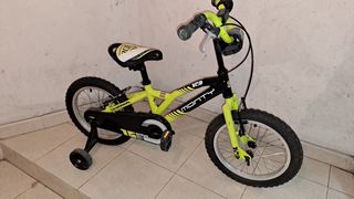 Bicicleta infantil de la marca Monty, modelo 103. Ideal para los más pequeños. - Color principal: verde lima y negro. - Ruedines incluidos. - Diseño deportivo.