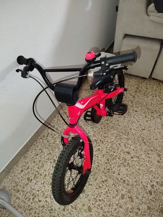 Bici de aluminio de la marca Monty. Lleva de regalo los ruedines para que aprendan a andar en bici. Está totalmente funcional.