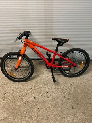 Bicicleta infantil de la marca Monty, ideal para los más pequeños. - Cuadro de color rojo con detalles en naranja. - Ruedas de 20 pulgadas. - Frenos de mano.