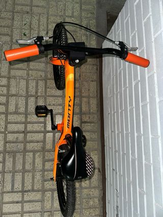 Bicicleta infantil de la marca Monty en color naranja. - Ruedas de 16 pulgadas. - Diseño deportivo. -lo unico que tiene mal es el sillin y los frenos