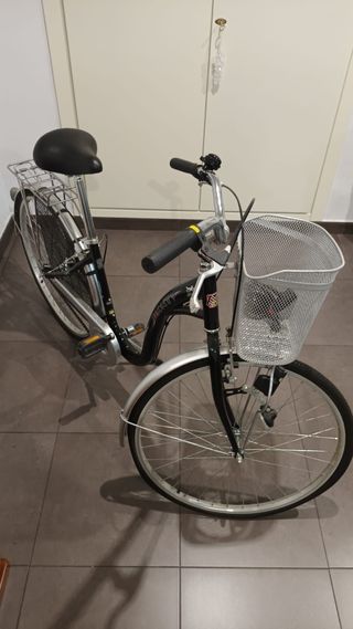 Bicicleta de paseo Monty en color negro con cesta. - Cesta delantera metálica. - Sillín negro. - Guardabarros delantero y trasero. - Reflectores en las ruedas.