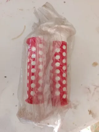 Juego de puños para bicicleta BMX estilo old school. - Color rojo con lunares blancos. - Diseño clásico para manillar. - Material plástico. Motoreta california bh bicicross phanter gac montesa monty