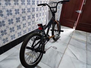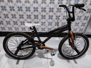 Bicicleta BMX Monty en muy buen estado. Ideal para principiantes o para uso recreativo. - Cuadro de color negro y dorado. - Llantas en buen estado. - Incluye sillín, pedales y 4 clavijas.