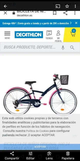 Bicicleta infantil Btwin en buen estado, ideal para aprender a montar. El manillar está un poco oxidado, Adjunto fotos para ver todos los detalles. - Color azul y rosa. - Ruedas de 20 pulgadas. - Incluye pata de cabra.