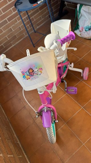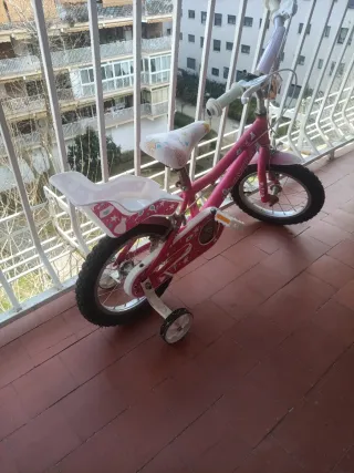 Bicicleta infantil de color rosa, ideal para niñas. - Ruedas de 16 pulgadas. - Incluye un asiento trasero para muñecas o pequeños. - Cesta delantera. Poco uso.