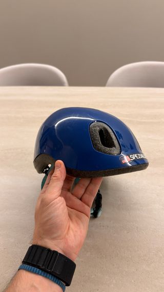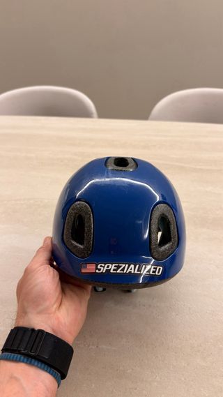 Casco de bicicleta para niños en color azul. - Diseño con ventilación. - Adhesivo con bandera de EE. UU. y 'SPEZIALIZED'. - talla 44-49cm - 160gr #casco #bici #bbh500 #spezialized #bwin