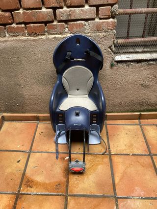 Silla de seguridad para transportar niños en bicicleta. - Diseño ergonómico. - Arnés de sujeción de 3 puntos. - Reposapiés ajustables. - Material de plástico resistente.