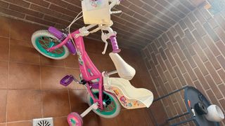 Bicicleta infantil de color rosa, ideal para niñas. - Diseño con personajes. - Manillar ajustable. - Pata de cabra.