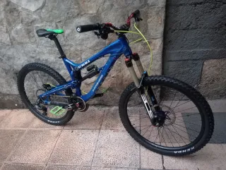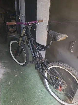 Poco uso. Talla L pequeña. Conservo factura. No hay que hacerle nada!. - Cuadro de carbono triángulo y basculante. - RockShox Boxxer World Cup amortiguador RockShox Súper Deluxe. - Frenos Shigura (manetas shimano SLX y pinzas magura MT5 regalo pastillas nuevas). - Transmisión SRAM GX DH 7v (regalo otro cambio y pulsador de repuesto). - Ruedas DT Swiss FR541 tras. y FR560 del. (buje delantero chris king). - Neumáticos Maxxis Assegai del. (poco uso y regalo un Micheín DH a estrenar) y Michelin tras. (casi a estrenar). - Casquillos de dirección ajustable (0, +4 mm, +8 mm) para longitud entre ejes y el reach. - Pedales Shimano SPD.