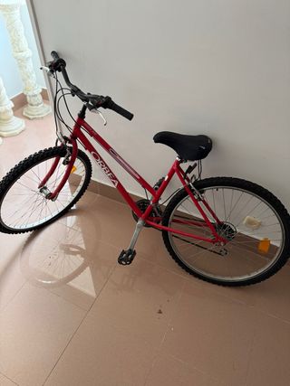 Bicicleta de montaña de adulto marca Orbea En buen estado aunque necesita una revisión ya que ha estado parada en el parking un tiempo (necesita cambiar neumáticos y hacer puesta a punto). Prácticamente no la usamos y ocupa un espacio que ahora necesitamos, de ahí el precio. - Cuadro Orbea. - Ruedas de montaña de 26’ - Suspensión delantera. Regalo colgador de pared y casco con la compra. Dispongo de varias bicis.