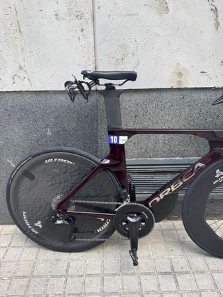 Vendo Orbea ORDU M30iLTD de triatlón / contrarreloj en talla SM, con menos de un año de uso y en estado impecable. Bicicleta muy rápida, estable y eficiente en posición aero. Ideal para media y larga distancia o para quien quiera competir con una máquina de máximo rendimiento. 🔧 Montaje y estado: • Grupo electrónico Shimano 105 Di2 • Frenos Shimano Dura-Ace • Ruedas OQUO • Platos y bielas totalmente nuevos, a estrenar • Sillín nuevo, sin uso • Cuadro aero de carbono Orbea • Cableado totalmente integrado • Muy cuidada, siempre revisada Se vende con acoples y ruedas de serie. No son las de la foto.