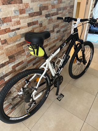 Bicicleta Orbea de montaña. - Cuadro blanco y negro. - Ruedas Hutchinson Python. - Sillín negro. - Guardabarros delantero y trasero. - Portabidón. -Botines especializados -Guantes especializados -Pines de agarre para la bici