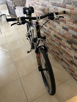 Bicicleta Orbea de montaña en color blanco con detalles en rojos. Lista para usar. - Cuadro de aluminio. - Frenos de disco hidráulicos 180mm nuevos oficiales de shimano. - Suspensión muy buena,se puede adaptar a tu peso. - Ruedas en 27. manillar de carbono. potencia de specialized todo el circuito de frenos,cable y camisa nuevos. pastillas oficiales de shimano nuevas. 8 marchas. el mecanismo de los platos no va porque se me rompio el cable y no lo e arreglado.(fácil de arreglar). la bici está muy bien,no es nueva obviamente pero a sido muy cuidada. las cubiertas de las ruedas están están al 75%. ACEPTO CAMBIOS QUE ME INTERESEN