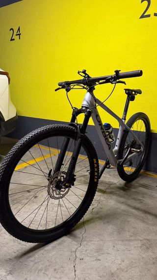 Bicicleta Orbea Alma M30 del año 2025. - Cuadro de carbono. - Ruedas de 29 pulgadas. - Color azul con detalles en rosa. - Talla L - Manillar y tija en carbono - Neumáticos Pirelli Scorpion 2.40 . - Llantas tubbelizadas . - Tecnología X-Fader . La bicicleta esta impoluta, usada en carril bici . - Horquilla Rock Shox SID . - Cambio XT shadow .