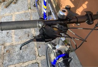Bicicleta rockrider 5.0 de Decathlon, 26 pulgadas, 21 velocidades. Se entrega sin sillín, zapatas traseras ni tuercas de apriete de la rueda trasera, hay que hacerle una puesta a punto, la rueda trasera tiene un llantazo, hay que ajustar los radios y está pinchada.. No negociable. Talla M. Palabras relacionadas: 26”, btwin, triban, conor, bh, orbea, mtb, btt.
