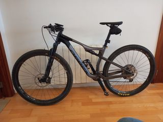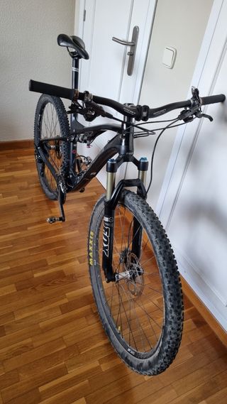 Se vende Orbea Oiz M30 de carbono con ruedas de 27,5 de talla M. Comprada en el 2014. Horquilla Fox Float 32, suspensión Fox Float CTD con bloqueo desde manillar, frenos SLX, manetas XTR, desviador y bielas SLX con 3 platos 22/30/40, cambio trasero XT 10 velocidades 11-36, pedales Shimano Deore nuevos, manillar Ritchey de carbono, ruedas Tubeless Ready 2,25 delante y 2,10 detrás. Le hace falta purgar el freno delantero.