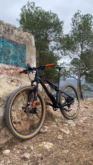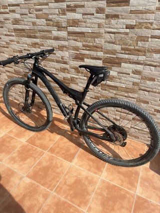 Orbea Oiz M50 de 2019 muy bien cuidada. Cambio Shimano XT de 3x9, frenos de disco, ruedas tubeless de 29' y suspensión doble con bloqueo en 3 posiciones en manillar, suspensión delantera de 32. talla L, yo mido 1.80m. Está puesta a punto y la vendo por no usarla. (EN CASTELLÓN AUNQUE LA PUEDO LLEVAR A LA POBLA DE FARNALS)