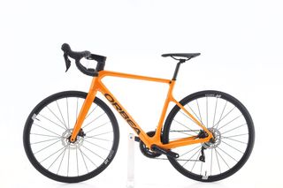 Bicicleta Orbea Orca del año 2022 en color naranja. Se encuentra en buen estado. - Cuadro de carbono. - Frenos de disco. - Ruedas de carretera.