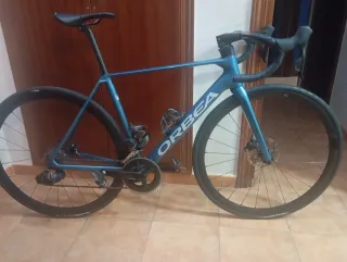 Bicicleta de carretera Orbea Orca talla 55 carbono en perfecto estado. -Bielas SRAM RED 170 -CAMBIO electrónico y frenos SRAM AXS RIVAL XPLR -Cassette SRAM Rival 10-44 -Tija Voicevelo 27.2 carbono -Sillín Specialized Power -manillar integrado Roval Rapide Carbono 380mm -Ruedas Carbono Elite ENT -Neumáticos Continental GP5000 Sin pedales