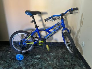 Bicicleta infantil Orbea MX 16 en color azul. - Ruedines incluidos. - Diseño deportivo. - Frenos de mano.(freno trasero estropeado)