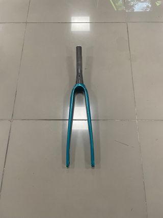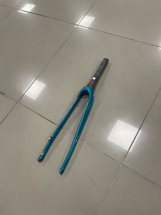 Horquilla de carbono para bicicleta Orbea Orca modelo 2024. - Color azul turquesa. - Tubo cónico. - Diseño aerodinámico.