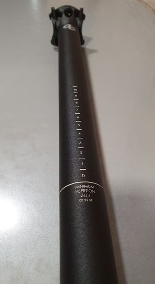 Tija de sillín OC, de aluminio. De 31,6mm de diámetro y 400mm de largo. Amarre de sillín recto. Procedente de despiece.