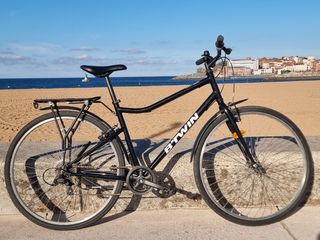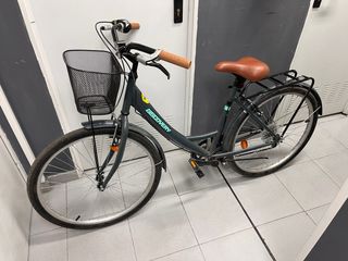 Bicicleta de paseo en color negro, ideal para desplazamientos urbanos. Está así de no usarla hay que hacerle algunos arreglos llantas etc una puesta al día pero costó cara es de decathlon. - Cuadro de acero. - Ruedas de 28 pulgadas. - Guardabarros delantero y trasero. - Sillín cómodo. - Reflectores en las ruedas.