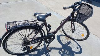 Bicicleta urbana de paseo, ideal para desplazamientos diarios. Color marrón y negro. - Cesta delantera. - Portabultos trasero. - Guardabarros. - Reflectores en ruedas. MUY POCO USO. Se le tendrán que hacer cambios de cosas que por no usarse durante mucho tiempo estén mal, pero está nueva...