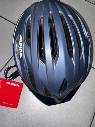 Casco de bicicleta Alpina en color azul, ideal para protegerte en tus rutas. Se incluye una camiseta no sé si es de hombre o mujer parece más de mujer solo vendo el casco la camiseta es de regalo el casco se me cayó tiene pequeño inconveniente pero pegándolo con superblue se arregla apenas se nota - Diseño moderno y ventilado. - Marca Alpina.