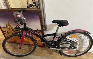 Bicicleta Btwin 500 de 24 pulgadas, adecuada para niños y niñas de 6 a 10años. Color negro y rosa Con marchas (funcionan perfectas) Incluye cesta delantera negra ,aunque no sae en la foto Caballete para aparcar fácilmente Timbre Frenos y ruedas en perfecto estado Lista para usar, sin necesidad de hacerle nada Está como nueva, solo se ha usado 2 o 3 veces como se ve en las fotos y en las ruedas , siempre guardada en interior Se vende por no usar. Entrega en mano en Barcelona