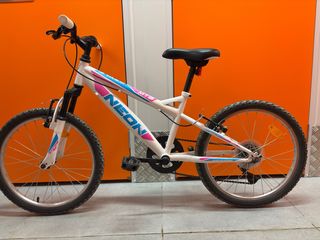 Bicicleta Neon de 20 pulgadas, ideal para niñas. - Cuadro blanco con detalles en rosa y azul. - Ruedas de 20 pulgadas. Muy buen estado general. Con una limpieza a fondo queda estupenda. Entrega en zona Hortaleza, Madrid. No me desplazo a ningún sitio.