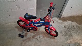 Bicicleta infantil de Spiderman, ideal para niños de 3 a 5 años. Cuenta con ruedines para facilitar el aprendizaje. - Diseño inspirado en Spiderman. - Ruedines incluidos. Guardada en trastero por lo que está en muy buen estado. Suena al pedalear por lo que habría que arreglar eso aunque según he leído en comentarios de Amazon suele ser habitual en este tipo de bicicletas. Se puede ver y probar sin compromiso